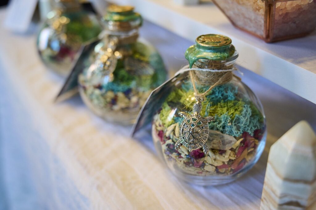 The shop’s signature witch bottles serve as powerful ritual tools and stunning decorative pieces. Each bottle is crafted during the appropriate moon phase and tide for its specific intention, harnessing the ocean’s natural rhythms to enhance magical potency. These make exceptional gifts for those looking to bring ocean energy into their sacred spaces or homes.