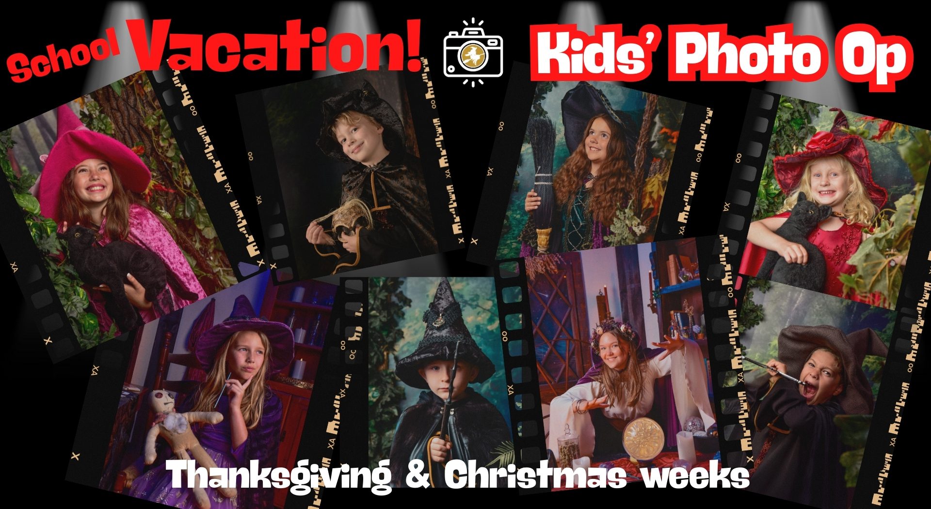 A kid-only witchy portrait session offering four fun styles for a quick, imaginative Salem experience.