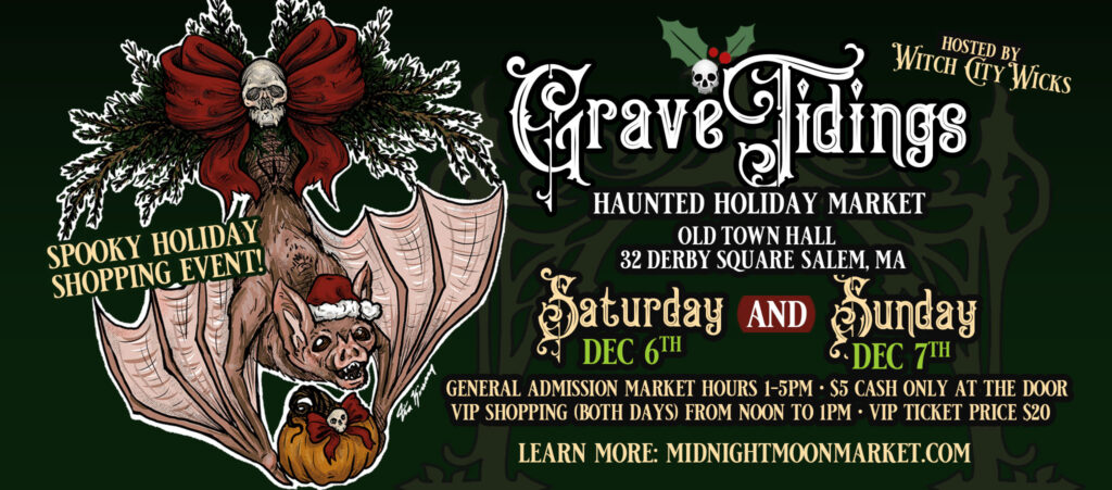 Here it is—the event that many consider the highlight of Salem’s alternative holiday season. Witch City Wicks presents Grave Tidings, Salem’s premier gothic holiday market featuring 50+ dark artists, alternative craftspeople, and vendors who celebrate the beautiful, shadowy side of the season.